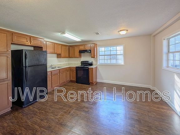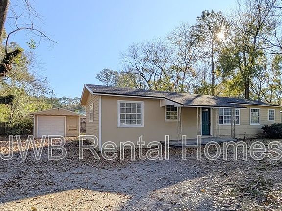 This 3Bd/2Bth Paxon home blends charm and practicality, featuring a detached garage plus a shed for added storage. Inside, wood-look vinyl and carpet flooring flow through an open layout, complemented by central A/C and W/D hookups. A spacious yard, porch, and patio create relaxed outdoor spaces. Near Paxon Shopping Center, Hammond Park, and I-10 access, it's a convenient base for daily life.