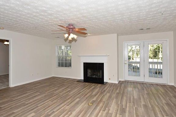 This lovely home is nestled in the very back of the complex where it's nice and quiet. Totally renovated kitchen with new cabinets, new granite countertops, under-cabinet lighting and recently upgraded appliances with counter-height bar seating. New LVP flooring throughout - kitchen, living and dining areas, bedrooms and closets. Newly renovated primary bathroom features a walk-in shower with frameless glass doors and bench seating, a new double vanity with quartz countertop, expanded linen closet and heated tile floors. Second bathroom is upgraded with granite vanity top and tile floors. The open-concept floor plan makes this condo feel even larger and is perfect for a room-mate situation with the bedrooms & bathrooms on either side of the living area! This home features gas hot water and cooking, and includes a cozy gas-log fireplace, ideal for those chilly winter nights. Both over-sized bedrooms feature upgraded walk-in closets with custom shelving and plenty of storage. Patio was recently painted and upgraded with a new outdoor light/ceiling fan and custom shelving in the outdoor storage closet. New gas hot water tank in 2022, new HVAC system in 2023, new roof in 2023.