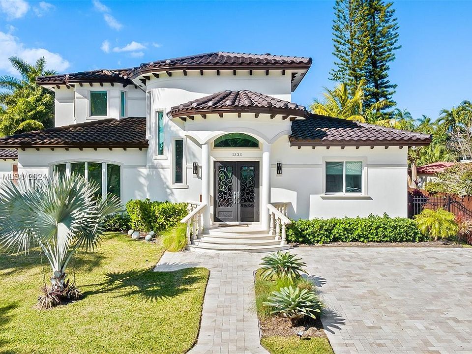 Step into this Mediterranean oasis. Greeted by 24ft ceilings that elevate the sense of space & adds a touch of elegance to every occasion.Open FloorPlan seamlessly transitions into the custom-designed kitchen & 2nd living space,a perfect blend of elegance & functionality. Spacious master suite w/balcony overlooks resort-style pool deck. Convenient 2nd driveway tucked away in the alley entrance, leading to 600sqft garage/storage. This Beachside Estate was built in 2016 on an Elevated Double Lot, underwent a Renovation2022 down to the finest of details. Nestled in Hollywood Lakes, enjoy walkable community w/parks,schools & walk to the beach. 1mile to Downtown & world class private club,Shell Bay; most expensive gulf club membership in the nation. Live in The Diamond of the Gold Coast.