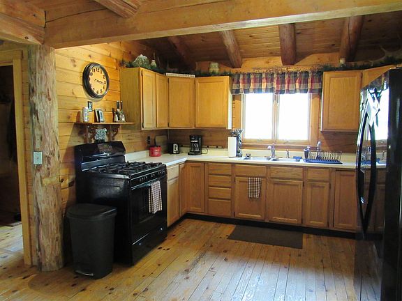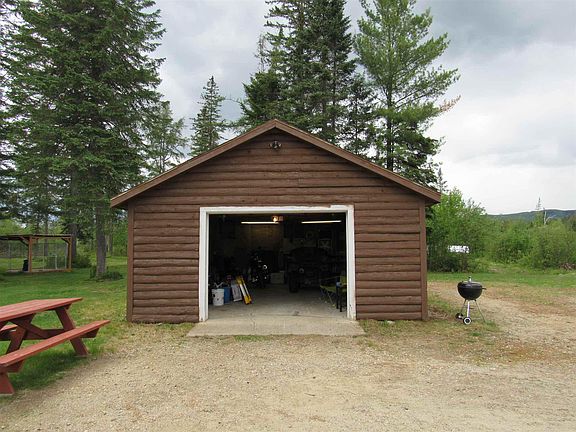 This beautiful log home sits on 5.4 acres of land in beautiful Dummer, NH. Open concept kitchen and dining area with a cement block chimney with marble overlay. Propane fireplace works great to heat the entire home. There is also a forced hot air heating system that can be used. This unique log home has a catwalk from one bedroom to the other on the second floor. Lovely enclosed, 3 season porch. The full basement makes for a great workshop area. There are two wells on the property, one for the house and one for gardening. The land abuts Newell Brook. Detached garage with additional attached she off of the back. Snowmobile and ATV access! Plenty of blueberry bushes, apple and a plum tree. Lots of wildlife to watch! Generator, 2002 dodge ram 1500 plow truck and dog pen included in the sale. Gun safe and 2012 gravely zt 48 inch 0 turn mower negotiable.