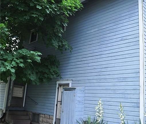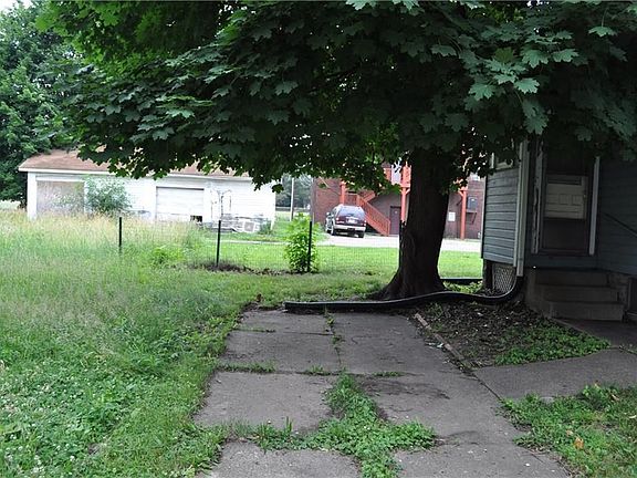 What a delightful home for the price! The generously sized living room has decorated fireplace, ceiling fan and natural woodwork. The formal dining room could easily equip a large gathering at the table. There are pocket doors between the living room and dining room. The covered front porch includes table and four chairs. This home has good bones, adorned with natural woodwork, spacious room sizes and street parking. There is an adjacent vacant lot beside this home (not included), but gives you room to roam. The shaded backyard has a spot for patio chairs and there is a tool shed. The mailbox is conveniently attached to your home. Add to your portfolio or spend less money than rent.