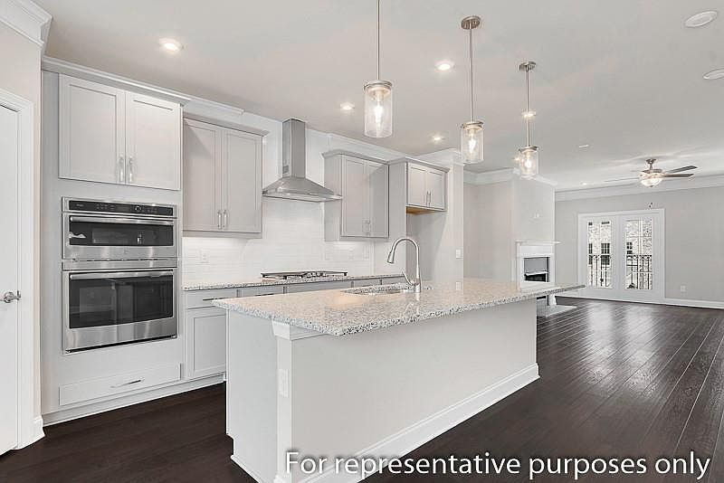 - Kitchen Features: View to Family Room, Kitchen Island, Pantry Walk-In, Solid Surface Counters, Cabinets White