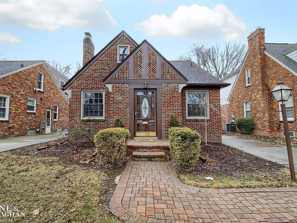 Beautiful English style brick bungalow. Completely redone throughout in 2020. Natural fireplace in living room. Beautiful kitchen with Quartz countertops and stainless steel appliances. Large family room added off back with doorwall to brick patio. Primary suite on second floor with walk-in closet area and full bath with heated floors.