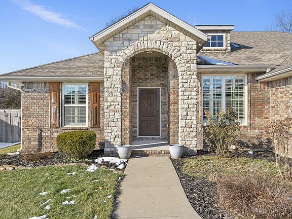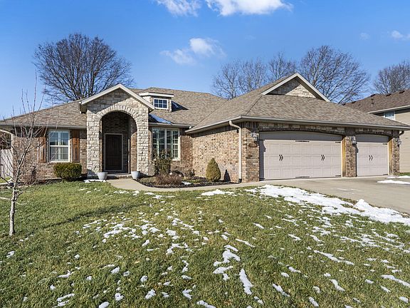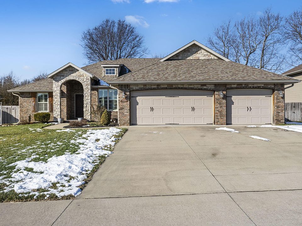 Quality built home located in the beautiful Vintage Hills Community! Located just outside Springfield City Limits in Willard School District, this single level home offers a split bedroom plan with 3 beds, 2 baths, and a 3-car garage. Inside the front door, discover hardwood floors through the main living room and a gas fireplace. The kitchen provides a large island w/sink, Knotty Alder cabinets, granite counters with a tiled backsplash, a walk-in pantry, and stainless appliances. The primary bedroom suite features tray ceilings, dual sink vanity, 6' walk-in shower, and large walk-in closet. Nearby, there is an office space/ formal dining room with French doors and a spacious laundry room. 2 more bedrooms share a full hall bathroom with shower/tub combo. The privacy fenced backyard includes a wooden storage shed w/electricity, sprinkler system, and the garage offers epoxy floors and a storm shelter. This West Springfield home is a must-see!