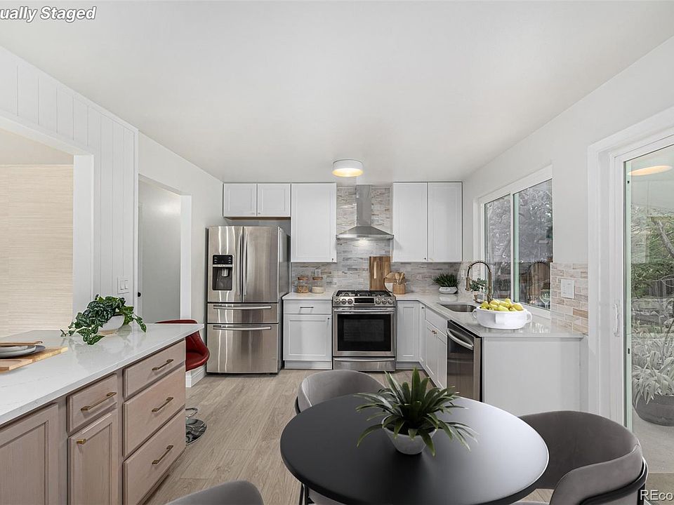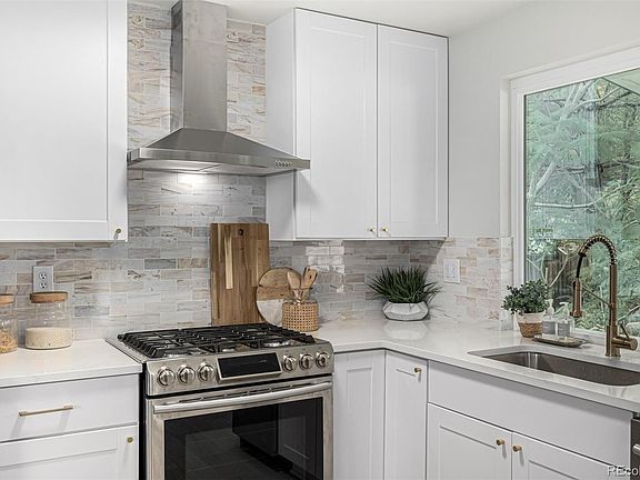 Welcome Home! Stunning and fully Remodeled Lakewood home is situated on a spacious lot near Main Reservoir and offers both designer beauty and convenience. Step inside to discover a showstopping kitchen featuring quartz countertops, stained white oak cabinets, and stainless steel appliances. Kitchen bar seamlessly connects to the backyard making entertaining a breeze.  Enjoy the luxury of new floors, new furnace & central AC, new cabinets, new designer baths, paint, windows, updated lighting and plumbing fixtures throughout. The main floor boasts the Master Suite with a Designer Bathroom and two closets, plus an additional bedroom, bathroom, and family room off the kitchen. Downstairs, a huge family room, gorgeous bathroom, two more bedrooms, an office, and a laundry room with ample storage await.  Huge Work shop off garage can also serve the backyard for entertaining!!  Step outside to your own lush private oasis! The fully landscaped backyard features easy access from the kitchen and offers the perfect setting for gatherings around the fire pit or under the covered patio.  Don’t miss this opportunity to live steps from four neighborhood lakes and enjoy leisurely walks with loved ones, plus short drive to all the great shopping and eateries at Belmar. Quick commute to the mountains! Schedule Your Showing Today!