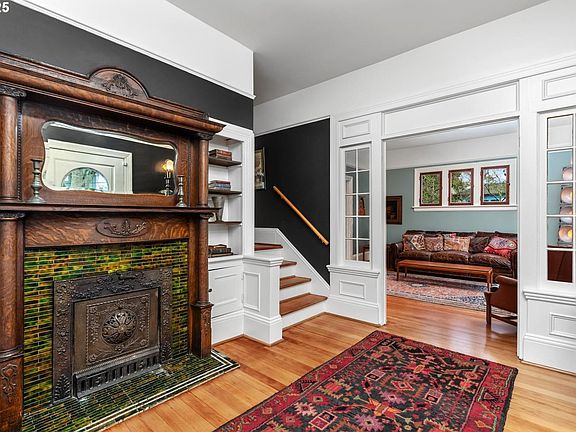 This isn’t just a beautiful 1907 foursquare in a prime Inner SE location — it’s a home with soul. Built in the Edwardian, or “Gilded Age,” this 1907 craftsman pairs classic symmetry with everyday ease. Its boxy footprint offers large, airy rooms, bay windows, a wide staircase, and a gracious front porch — all adding up to sunlight & space to move. From its striking curb presence to its bold formal entry fireplace trimmed in mahogany and tile — once both a practical heat source and a quiet symbol of status, its period details remain intact. Beautiful oak floors ground the home while a built-in bench seat overlooking the side yard invites both thriving houseplants and lingering guests. The kitchen is simple and inviting, with counter seating and an easy “work triangle” for smooth movement. A butler’s pantry adds deep recycling bins and prep space for gatherings. Upstairs, three generous bedrooms provide flexibility for furniture items and the partially finished attic is ready for art making, collecting or future guest. Downstairs, honey-colored fir and salvaged old-growth Douglas fir timbers evoke the warmth of a handcrafted yacht cabin. This level features high ceilings, a den/media room, office, laundry, guest suite, abundant storage, and a spa-inspired bath with Ipe wood shower flooring. Optionality abounds for multi-generation living. Set on a fully fenced, sunny corner lot framed by white oak, dogwoods, and maples, the property offers privacy and year-round beauty (haven for hellebores). A two-car garage with EV charging, newer roof, sewer, radon, paint, updated systems including high-efficiency furnace & tankless water heater provide peace of mind. With a Walk Score of 95 and Bike Score of 97, the city unfolds effortlessly at your doorstep. Stroll to parks, rose gardens, live music venues, rooftop bars w/transit & shopping moments away. Lovingly cared for and deeply rooted, this storied residence is ready to begin its next chapter — with YOU.