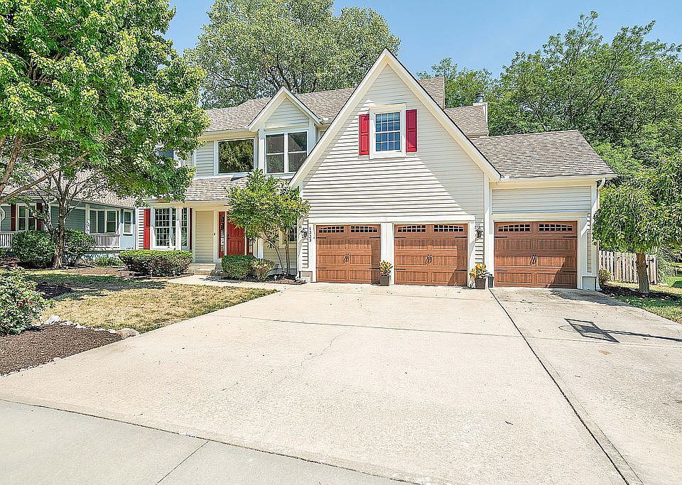 Gorgeous 4 br/3.5 ba home w/oversized .81 acre lot. Private wooded back yard w/ unobstructed forest views. The forest is part of the lot. This special home is located in the quiet SE corner of the Longview Farm area on Surrey Trace (Lees Summit.) Beautiful neighborhood features excellent schools (Historic Longview Farm Elementary & Lees Summit West High School), walking trail, tennis courts, pool, sport court. Longview Rec Center, movie theatre, coffee shop, restaurants, and the Longview Lake state park are all nearby. Home features: 4 bedrooms, 3.5 baths, custom gourmet kitchen, hardwood floors, fireplace, composite deck, 3 car garage with full-width flat driveway, finished basement with wet bar & full bath. Modern kitchen w/solid wood, birds-eye maple cabinets, mission-door style, full-height to ceiling with lighting above in an open plan kitchen/living/dining area with 1 1/4” granite counters w/overhang seating for 4. Updates: 2005: Wood floors added to dining room, office and living room on main level; kitchen, foyer and bath hardwood floors refinished. 2012: Roof replaced. 2015: Water heater replaced. 2017: All stairs carpeting replaced. 2018: New garage doors installed. HVAC: American Standard High Efficiency heating & air conditioning unit installed, with a new AprilAire whole house humidifier and an Air Scrubber Cleaner. 2019: Hickory hardwood floors added to all four bedrooms and upstairs hallway. Quality LVP floors added to finished basement, including wet bar area. Three large picture windows replaced. 2020: Main floor powder room and guest bath upstairs have new toilets installed. Sump pump replaced. New updated light fixture added to foyer. 2021: New counter-depth four-door Bosch refrigerator with ice maker. 2022: Master bath has new luxury vinyl tile installed on floors in August with new Kohler toilet, elongated bowl, chair height. New exterior lights installed on garage front. Dates & Square footage are approximate and may vary slightly.