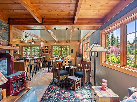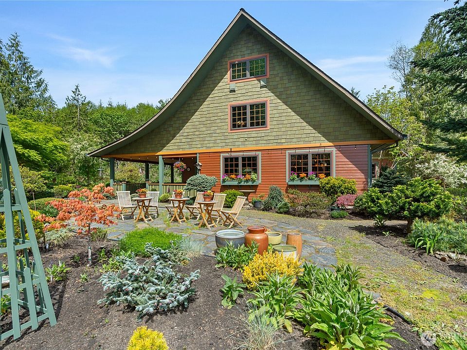 Escape to a serene 8.42-acre retreat where every detail whispers timeless elegance. 3 bed, 2 bath, 2,097 sqft home blends Tuscan inspiration with Pacific Northwest charm. The kitchen stuns with handmade, kiln-fired tiles, copper sink, and fir-front appliances. Vaulted ceilings, exposed beams, and fireplace evoke rustic luxury, while loft and bonus room offer versatile living spaces. Outside, discover walking trails, live creek, and gardens. Relax by sunken firepit under night lights or entertain on the expansive covered deck. The garden shed and historic creamery offer potential for guest quarters or creative spaces. Peace, privacy, and endless possibilities await at the end of a quiet country road. Additional features list available!