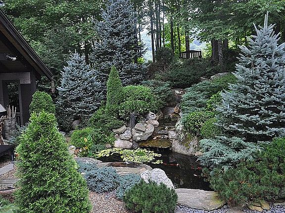 Exquisite Custom Craftsman home made for gallery style living,open & light filled,rich hand crafted wood details used sparingly with this 3 Bedrm,4.5 Bath,Great Rm W/Hardwood Flrs & Vaulted Ceiling & Gas-Log Fireplace,open chefs Kitchen w/Breakfast Bar,formal dining area, LG Master Suite W/Hardwood Flrs & Walk-In Closet, soaker tub, walk-in shower, form liv rm W/Fireplace,Lower level 1,100+ sqft in law suite,and back lawn serenity and peaceful entertaining area w/water feature & koi pond.