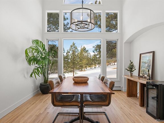 Stunning Mountain Contemporary in prestigious Hiwan! This spacious 6 bedroom, 4 bath home has been beautifully remodeled and charms with an abundance of natural light flowing through the high ceilings and the open floorplan with refinished hardwood floors. Entertain your family and friends in the great room by the fireplace with a stunning stonewall. Invite them to the living room with gas fireplace and wet bar to access the back deck for a dip in the hot tub. The adjacent gourmet kitchen with new island and new quartz countertops has a large bay window, Bosch & GE appliances, double self-cleaning oven, and down draft. You will love the new lights fixtures on the main floor and the views from the formal dining room. The office has custom-built shelving and desk. New front door. All bathrooms were upgraded and feature new quartz countertops, sinks, and tiles. The generous and airy 5-piece main bath has a 2-sided fireplace, deep soaking tub, new tiled floor/shower and walnut framed mirrors. You will sleep heavenly under vaulted ceilings in the spacious main bedroom. All carpeting upstairs is new. The fully finished, garden-level basement features another living room, 2 bedrooms and a bathroom. The adjacent bonus room is fully finished and makes a great workshop or art room with tray ceiling, recess lights, separate storage room and washer/dryer hook-up. Other features: new boiler, new casing in basement, new trims/baseboards, new sliding door, new screens, new firedoor to garage. ** Solar panels (paid off) ** Evergreen offers best mountain living, fantastic recreational activities year-round, easy access into Downtown, to the airport or into the mountains. 2022-01-10