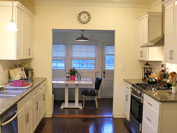 This gorgeous home, built in 1924 and renovated in 2013, has newer wiring, plumbing, and roofing, some new windows, hvac, H2O heater, stainless-steal appliances, and granite counters. There are original hardwood floors throughout, a master w/sitting area & walk-in closet, level fenced yard with deck, breakfast nook w/booth, and a charming, elevated view of the neighborhood trees from the rear of the house. Additional features include a claw foot bathtub, spacious attic, washer & dryer and custom window treatments. Another huge bonus is the considerable off-street parking and driveway on the left side of the home.