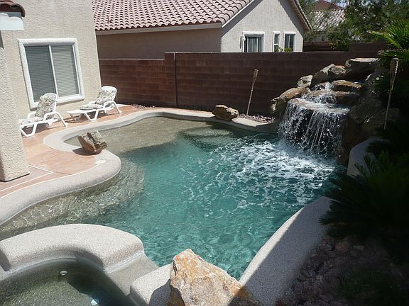 Make a splash in this Summerlin 3 bedroom home with pool & spa. Features include oversized rooms, Majestic master suite with walk in closets, New carpeting, new paint throughout house and upgraded lighting fixtures throughout home, gas fireplace, and aRecently installed solar heating system. It will go fast so ACT NOW.