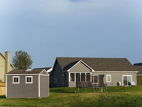 Amazing ranch home in Westwood. Home built in 2018. Move in ready & upgrades you won’t find in other new homes. The open floor plan offers a spacious great room with open kitchen & dining area and 14ft vaulted ceilings. Kitchen countertops are granite and quartz. Modern marble white and black. Oversized island offers 4 counter height areas for seating as well. Giant walk-in pantry with extra shelves! Custom cabinetry in kitchen with upper & lower cabinet lighting, all soft close draws & doors, uppers added 12 inches and pull-out drawers in lower cabinets, pot filler, slate (fingerprint resistant) appliances, & natural rock back splash make this home a fabulous find! Master BR has 2 giant walk in closets, a private bath with beautiful double vanity & shower. There are two additional bedrooms and hall bathroom. Pull out step stool built in to sink vanity for little ones to reach sink easily. Linen & coat closets also. Laundry room is off the kitchen with extra cabinets, and custom-built desk for in home office area. There is a custom sound system and speakers throughout the home, great for entertaining. Custom lighting in all rooms and exterior. 4 camera surveillance system, 1 TB hard drive staying with the home. LVP flooring throughout the home and tile in bathrooms make the flow of this space amazing. Pocket doors to save space in several areas. Screened in porch with tv hookups already installed. Walkout patio off the master bedroom with amazing views of the sunset. This home is situated at the end of a cul-de-sac and on the biggest lot on the block. Tuff shed that matches the home, is staying with the house and there is also attached 2 car garage. 2 minutes to I-35. Home backs fields, making a beautiful view. Call 785-418-6004 to schedule a viewing. 1467 sq feet Lot size .33 acres Attached garage 409 sq ft Screened in porch 124 sq ft Patio off master 120 sq ft Tuff Shed 120 sq ft Oversized kitchen island 11 ft 3in x 42 in