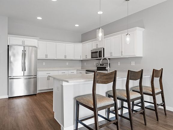 Like-new condition in this stylish ranch townhome situated on a peaceful cul-de-sac. This 2 bedroom, 2 full-bath unit includes 1353 sq feet on the main and incredible opportunities in the fully framed lower level!! You will love the main floor laundry, large open kitchen with white cabinets, quartz counters, pantry and breakfast bar! The great room opens to the kitchen and dining area and includes a vaulted ceiling, a cozy electric corner fireplace, slider to deck, LPV floors and neutral decor. The primary bedroom suite offers a bath with double sinks and a huge walk-in closet. This is a rare find and a great value! $250.00start-up fee at time of closing