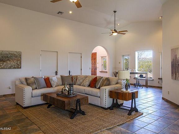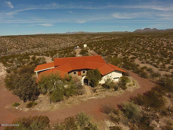 This property will be sold at auction on March 26 subject to a minimum bid of $275,000 plus an 8% buyer's premium. A Bidder's Information Packet is available from agent. This turnkey mediterranean style home is located on 69 private fenced acres in the Cacabel Community about 20 miles north of Benson. It is surrounded by thousands of acres of state land and amazing views overlooking the Cascabel Cliffs. Gourmet cook's dream kitchen w/miles of custom cabinetry & granite counters & backsplash,to of the line appliances, 2 prep islands, and breakfast family area. Master suite boasts two full baths. One of the bedrooms fitted w/ bookcases can be used as a library or office. 2 steel warehouses 24x32 w/covered shed, 2 cars wide, irrigation well and domestic well w/5,000 gal tank. Fully fence
