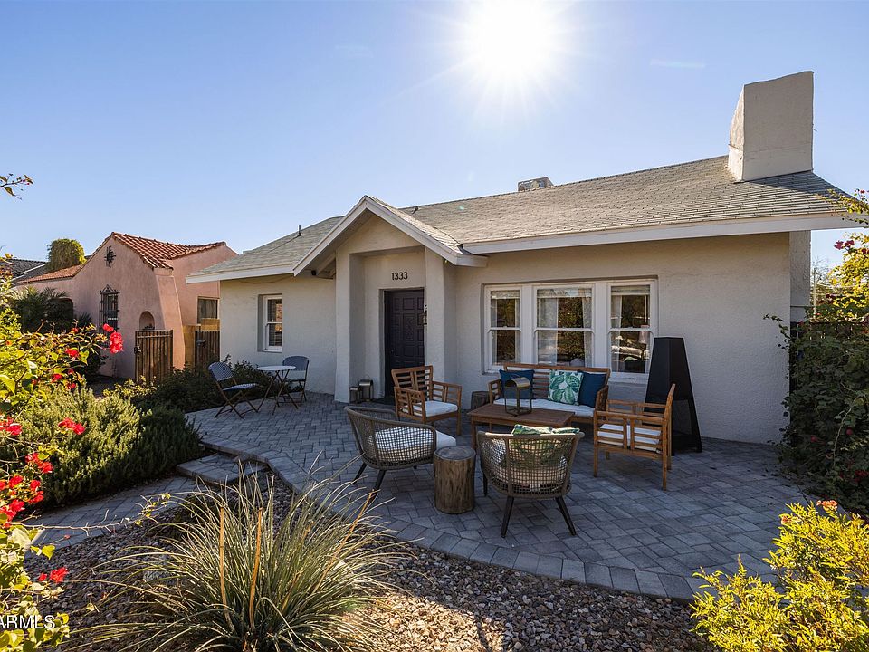 Welcome to FQ Story Historic District! This charming modern adobe offers great curb appeal with a huge front patio to enjoy the neighborhood. Upon entering, you will discover an incredible barrel vaulted ceiling, original hardwood floors, and a beautiful fireplace centered in the living room. The home offers fantastic historic details but has also been perfectly updated with the modern elements desired. Kitchen features custom painted cabinets, quartz & Butcherblock counters and a breakfast bar that highlights the open concept floor plan. Main house offers 2 beds/1 bath. Outside you'll find an amazing patio, huge yard, large 3 car carport, and a separately metered complete guest house offering another 1 bed/1 bath and it's own private patio perfect to rent or Airbnb! Welcome Home!