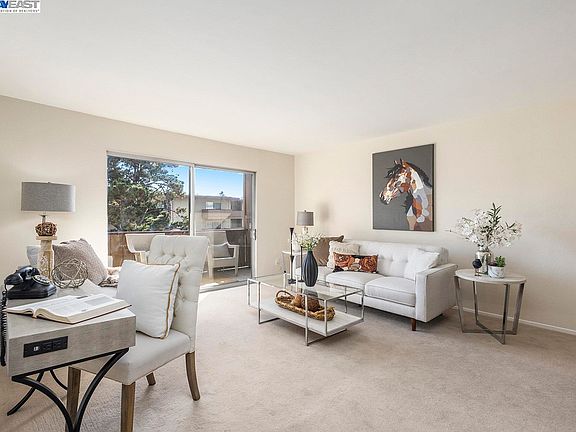 Top floor 1-bedroom condo with prime location with balcony overlooking pool, pergola, koi pond, seating areas and footpaths. Secure building and gate with 1 dedicated parking space, private storage closet, and community laundry room and gym. Unit is freshly painted with new light fixtures and ready for occupancy. Wonderful location at the foot of vibrant Webster Street with an easy stroll to restaurants, shopping, and bevy of other services. With Crab Cove and the beach nearby, take in a beautiful sunset after dinner! Transportation options include the popular ferry service and AC Transit bus line to catch BART. Washington Park is a City of Alameda favorite including tennis courts, play fields, and a dog park. Can’t beat everything this area has to offer!