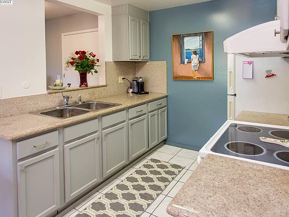 Rare find corner end unit with no one on either side. Great privacy & sunlight. New paint & makeover. Close to elevator & main entrance. Balcony off living room. One storage & parking space. Complex has pool, gym, & laundry fac. Close of beach, park, shops, transportation and downtown Oakland.