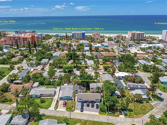 This offering presents a UNIQUE and RARELY available Madeira Beach investment real estate property operational as a stable, turnkey, incoming-producing asset with minimal expectation of extensive near-term capex, and exceptional land-bank potential for future development of a Luxury Beach Estate. The MB Apartments are comprised of three structures, a Beach Cottage and two Duplexes, consisting of five total units (three one-bedroom, and two two-bedrooms), each with a full bath, kitchen, and living room. Residents sign annual leases, have a history of on-time payment, and are responsible for electric utilities per separate meters. Owner pays water/sewer/trash. Current rents average $817 (one-bedroom), and $1,350 (two-bedrooms). HVAC are a combination of central and thru-wall / window systems. Each residence has been well-maintained. Features include expansive living area, tile, laminate, and carpet flooring. Many kitchen and bathroom upgrades have been completed. Common amenities include on-site laundry, ample off-street paved parking, and a private patio courtyard. Positioned on an expansive parcel (.2 +/- acre lot of 80 x 104), the Property has historically been 100% occupied, and is projected to operate with total expenses equal to roughly 51% of EGI. Located in a quiet, secluded residential enclave between Gulf Boulevard and the Intracoastal, the Property is ideally situated three blocks to public beach access at 133rd and 134th Avenues, and one block to a public park on the Intracoastal. Roughly equidistant between Clearwater and St Petersburg, MB is a highly desired community due to its quaint coastal ambiance, and predominance of single-family homes. Largely serving year-round residences, MB has relatively fewer tourist hotels and condos. Local John's Pass Village is known regionally as a major nightlife and shopping hotspot making it very popular among residents, and tourists alike. MB's near three-mile sugary-sand beaches attract devotees of sun, and the Gulf's turquoise-emerald seas. The popularity of fishing is punctuated by MB's annual October Seafood Festival drawing up to 130,000 for celebration of food, music, arts, and crafts.