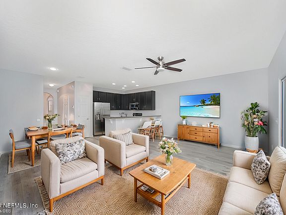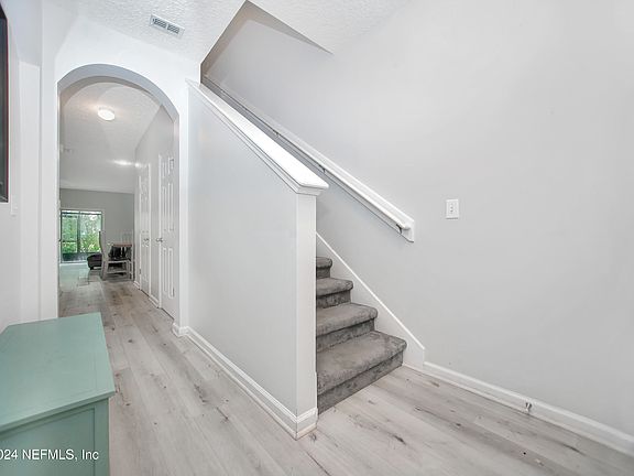 Welcome to this beautifully updated 3-bedroom, 2.5-bath townhome in the highly sought-after gated community of Verano, nestled in Bartram Park. This residence features modern upgrades, including a stylish kitchen with granite countertops, a new backsplash, stainless steel appliances, and a breakfast bar that flows seamlessly into a spacious gathering room. Enjoy relaxing in the covered screened patio with serene wooded views. The primary bedroom upstairs is generously sized, offering abundant closet space, while the secondary bedrooms are equally spacious. Recent improvements such as a newer roof and A/C system provide peace of mind. The community boasts a well-appointed amenity center with a clubhouse, pool, gym, and scenic sidewalks throughout. Don't miss your chance to make this your new home!