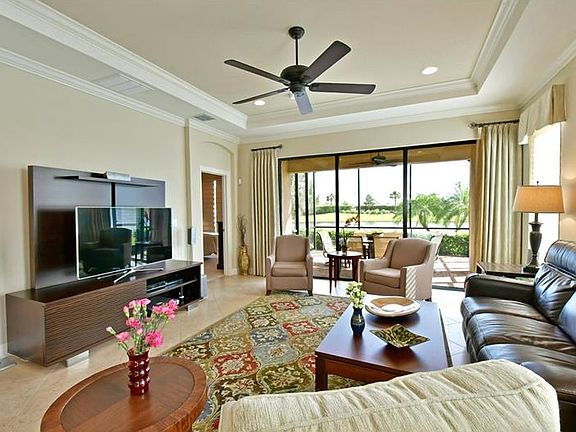 This absolutely stunning, lightly lived in home has been a beautiful Florida retreat for the current owners for just a few weeks every year, so this home feels & looks virtually new! With 3 large bedrooms PLUS a large den, this home has lots of room to spread out. Light & bright, the Great Room Arezzo floor plan has a great flow and design, with stunning water views that you can enjoy from your large extended screened lanai. Loaded with an enormous number of upgrades, this home is an incredible value as the owners are selling it turn-key furnished with TVs and all, for no extra cost!!! Some of the many upgrades you'll enjoy are the tray ceilings with crown moulding details, custom window treatments worth over $10,000, upgraded SS appliances, under-cabinet lighting and custom pull out drawers and built ins, washer & dryer, upgraded cabinetry and shelving throughout the home, granite in kitchen and Owner's Bath, and so much more! Wait until you see the huge walk-in closet in the Owner's Retreat! There is no better value than this currently available in Esplanade at Lakewood Ranch. Just bring your toothbrush and move right in! However, if you prefer to purchase the home unfurnished, sellers are willing to remove all furnishings for you. Start enjoying resort style living today and all the activities and amenities you can enjoy as a resident of this gate guarded community in one of America's bestselling master planned communities - Lakewood Ranch. Be sure to click on the virtual tour to see many more photos!
