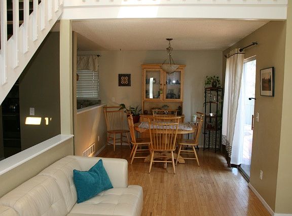 Super cute home that is more spacious than it appears! Ideally located within mature neighborhood and backs to a park and greenbelt area no backyard neighbors! Warm and inviting from the moment you step inside; tasteful decorator colors and open floor plan with soaring ceilings. Spacious living room with well-placed windows that allow natural light to stream in. Gleaming wood floors lead you from the living room to the quaint dining room. Dining room offers enough space for large gatherings and boasts a convenient pass through opening to the well-equipped kitchen. Beautiful kitchen with eye-catching tile backsplash, Corian type counter-tops, and newer upgraded appliances. A recently updated half bath completes the main floor. Up the stairs you will find a wonderful loft area with wood floors and built-in shelves a great space that offers several use and decorator options. Spacious master suite with private sink and vanity area. The second bedrooms is nice sized and offers a cute window seat area. The finished basement offers a large rec room area and a bath. Don t miss the deck in the backyard, a great space for outdoor dinner parties, or a nice place to relax at the end of the day. One car garage and storage shed complete this well-cared for home. Convenient location near shopping, Adams 12 schools, library and easy commute options.