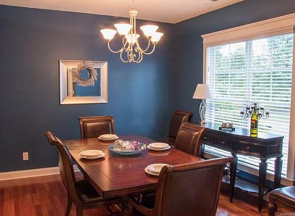 Wonderful Craftsman style home directly across the street from neighborhood green space. Upgrades everywhere! Beautiful cabinets & lighting. Breakfast area & bar. Surround sound in great room + speakers in dining, master & patio. Spacious upstairs Master suite with walk in closet, bath with lots of counter space. 2 other bdrms with shared bath. Lovely landing space at top of stairs. Enjoy entertaining friends on the patio. In the country, but minutes from nearby shopping & downtown Huntersville.