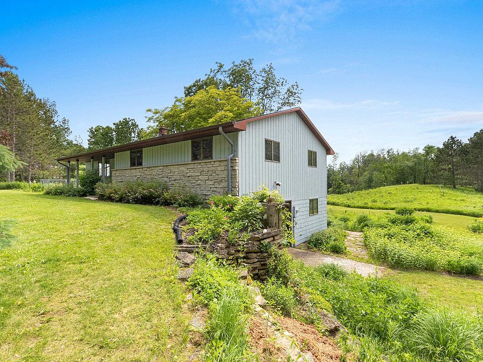Welcome to your private hillside haven! This lovingly cared for walk-out ranch is nestled on 7 breathtaking acres filled with wildflowers, gardens, and wildlife—truly a nature lover’s dream. Sip your morning coffee on the deck while watching wildlife dance around the pond or wander the trails and feel a world away. There's even a shed for your tools or hobbies. Whether you're planting, pondering, or just soaking in the peace that this sanctuary offers, a beautiful blend of home and harmony. Come fall in love with the simple magic of country living! Lower level bathroom just needs ceiling finished off.