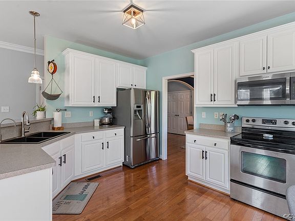 Welcome to this well-maintained home in the sought-after “The Woods at Summerford” community! It's the perfect place to call home! Beautiful curb appeal! Covered front country porch is a great spot to relax & enjoy the scenery in this peaceful setting. Wonderful open floor plan allowing plenty of natural light & brightness. Foyer's gorgeous accent wall & updated lighting make for a truly stunning entrance. Beautiful hardwood floors throughout the main living areas & updated lighting throughout! The mudroom-type hallway from garage features shiplap wall & hooks for hanging bags! Spacious family room complete with cozy fireplace! Eat-in kitchen opens to the family room & features a breakfast bar & stainless appliances. For more formal gatherings, there is a separate dining room. You will love entertaining in this home! The huge primary ensuite will not disappoint w/features including a large walk-in closet, double vanities, a wonderful jetted tub, & walk-in shower. Great-sized secondary bedrooms - BR#3 has a LARGE walk-in closet! Out back, you will enjoy your deck overlooking the lovely fenced-in yard w/irrigation system that is perfect for outdoor entertaining. This home has it all!