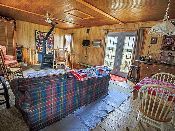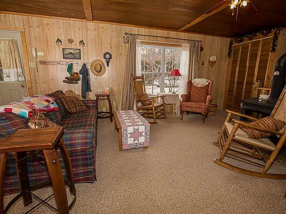Lovely cabin on 5 acres w/stocked pond. Property is fenced. Basement is finished. Very secluded. Must see to appreciate.