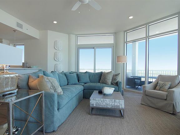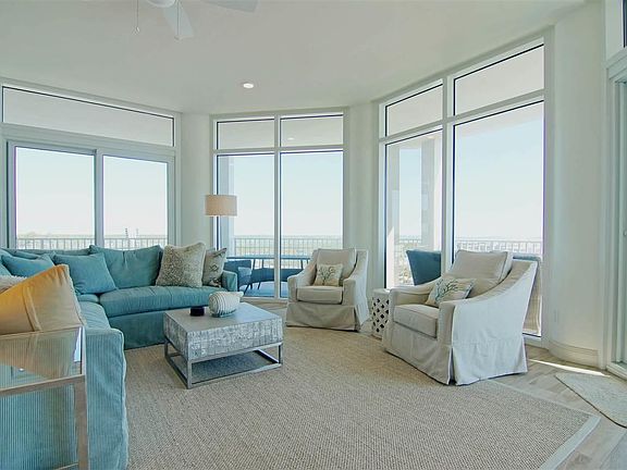 Brand new spacious four bedroom plus media room designer furnished residence with 300 degree views of the Gulf of Mexico and Intracoastal waterway. Gated entry to community. 1.5 parking spaces per residence. Grand entry lobby featuring multiple seating areas, custom artwork, and breathtaking views. Private owner storage. High speed elevators with climate controlled lobbies. Covered, outdoor seating areas. 7-night rental restriction. Owner's health club featuring a fully-equipped fitness room, yoga studio, and massage treatment rooms. Resident's club room with bar, pool table, and TVs. Heated, indoor pool. Kid's club room. Multi-use owner's room. Lavish outdoor pool oasis with expansive beachfront deck and hot tub. Adjacent to over 5 miles of the pristine Gulf Islands National Seashore featuring nature trails, bike trails and beautiful, untouched beaches. Chef's kitchen featuring Natural Gas Wolf® range and Sub-Zero® refrigerator. 10' ceilings. Marble floors, counter top and tub surround in Master Bathroom. Large, walk-in closets. Pre-wired for surround sound in living room. 8' solid core doors. Impact resistant glass windows. Separate laundry room with full size washer and dryer. Large, deep balconies for outdoor living. Wet bar with ice machine and wine refrigerator. Natural Gas grill on balcony.