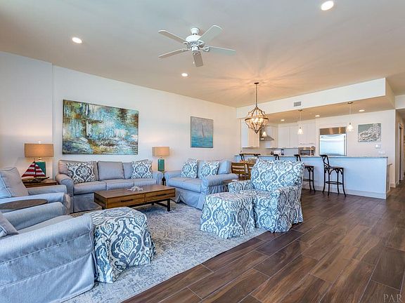 Stunning East residence in Perdido Key's Newest Luxury Gulf Front Condominium, Vista Del Mar. This professionally decorated unit is less than 2 years old and offers panoramic views of both the Gulf of Mexico and the Gulf Islands National Seashore. Your miles of long range Eastern Gulf Front views will forever be protected. Truly a Luxury Building that offers impressive quality interior finishes, uncrowded beaches, upscale amenities, and lushly landscaped grounds. This spacious 3 BR 3 1/2 bath residence has an innovative floor plan w 10' ceilings, floor-to-ceiling impact resistant glass, 8' solid core doors, and large balcony w gas grill for popular coastal outdoor living and spectacular views. Interior finishes include elegant wood look tile flooring in living areas, quartz countertops, and quality soft close cabinetry, Chef's kitchen features Wolf® 6 burner gas range and chimney hood, Sub-Zero® refrigerator, wet bar with glass shelves, wine refrigerator and ice maker. All bathrooms are well-appointed, and master bath offers large soaking tub, and large, walk-in closet, plus a 2nd closet. Secure, gated entry w assigned garage parking and owner storage at garage level and on balcony. Beautiful entry lobby featuring multiple seating areas, custom artwork, and breathtaking views. High speed elevators with climate controlled lobbies. Lavish outdoor pool oasis with expansive beachfront deck, hot tub plus covered, outdoor seating areas. The Heated, Gulf-front overflow indoor pool also has fabulous water views. Owner's health club features a fully-equipped fitness room, yoga studio, and massage treatment rooms. Elegant club room features fireplace, large bar, pool table, and TVs for great sports events & more. Vista Del mar is located adjacent to over 5 miles of pristine Gulf Islands National Seashore where you can enjoy nature trails, bike trails and beautiful, undeveloped beaches.
