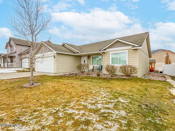 This comfortable and warm single level rancher will give you that at home feeling you been searching for when you arrive. Located in the heart of Rathdrum's growing residential community and close to park schools and shopping. Features like the Valuated ceilings make this 3 bedroom and 2 bath house a truly open concept a very popular design that offers great flow throughout the living room, kitchen and dining room. Main floor utilities, master bath with large soaker tub, tile backsplash, kitchen island, zero step entry throughout entire home, with a fenced and landscaped front and back yard, includes planter boxes, and a matching shed these are only a few of what this home has to offer! Easy to show and won't last long!