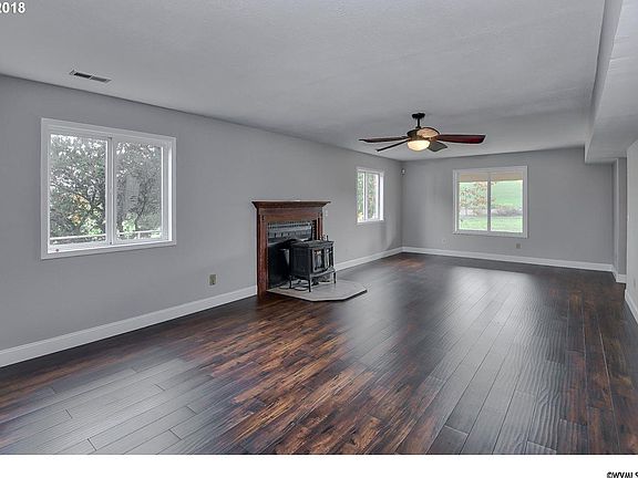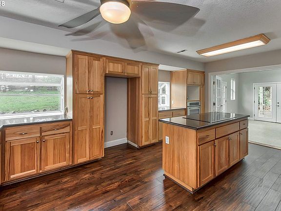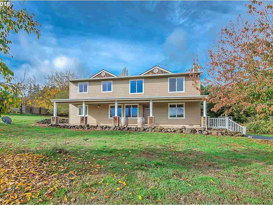 Beautifully updated modern farmhouse on over 8 acres in the heart of Oregon Wine Country. Completely remodeled kitchen with SS appliances, Corian countertops & stunning cabinetry. New flooring on main level. New roof installed in 2008. New furnace/heat pump. Fresh paint. Multiple outbuildings including two pole barns (one 60' x 40'). RV parking w/plug-in. Public road to be paved this year. Buyer to verify.