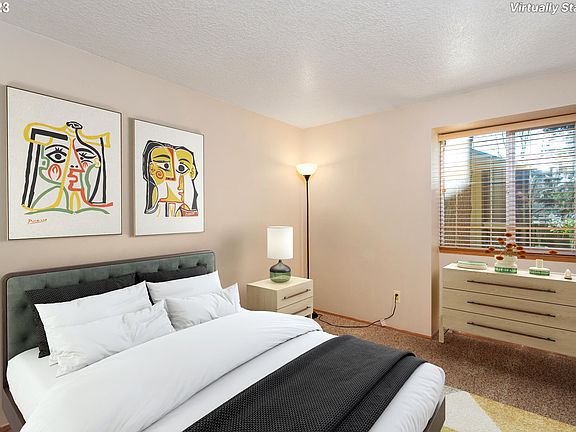 Nestled in the heart of Beaverton, this charming condo offers a delightful blend of comfort and convenience. Boasting 2 bedrooms and 1 bathroom within its 750 square feet, the residence is characterized by a tranquil ambiance accentuated by the presence of mature trees and open common areas. Situated as a corner unit on the upper level with a recently installed roof, the home is both private and aesthetically pleasing. Inside, the well-designed space features dual sinks in the bathroom, newer double-paned vinyl windows that invite natural light, and a kitchen equipped with stainless steel appliances. The convenience extends to the in-unit laundry, complete with a washer and dryer. A peaceful balcony invites moments of relaxation, while a covered parking space and additional storage unit enhance practical living. The location further elevates the appeal, as it sits conveniently close to Hwy 217, providing easy access to a myriad of restaurants and shops, making this condo an ideal haven for those seeking a harmonious blend of comfort and accessibility. Open House Saturday 12pm-2pm.
