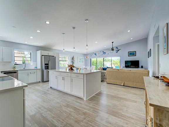 SIMPLY BEAUTIFUL! Crystal Pointe is so proud to offer this pristine 3 bedroom 2 bath 2 car garage CBS home for sale. Stunning remodel with the open concept, luxury vinyl floors, gourmet kitchen with center island and quartz countertops, coffee bar area, desk area all open to the living and dining room. A magnificent space to entertain in as the living room opens to the patio and yard area with room for a pool should you desire. The primary suite also opens to the patio area with a spectacular master bath and custom designed closets! The 2 guest bedrooms /office also have custom closets. Not only is the home fully renovated there is a brand new barrel tile roof! The community offers many amenities, security, pool, tennis, pickle ball and close to the Dog friendly beaches #ComeJoinUs
