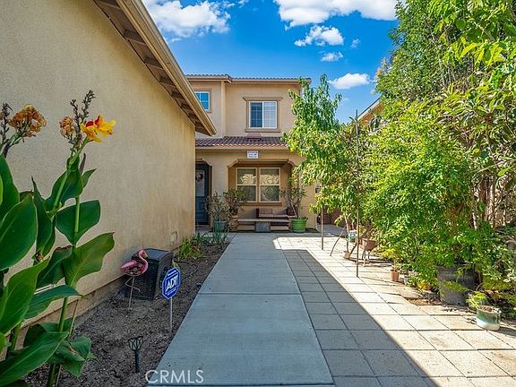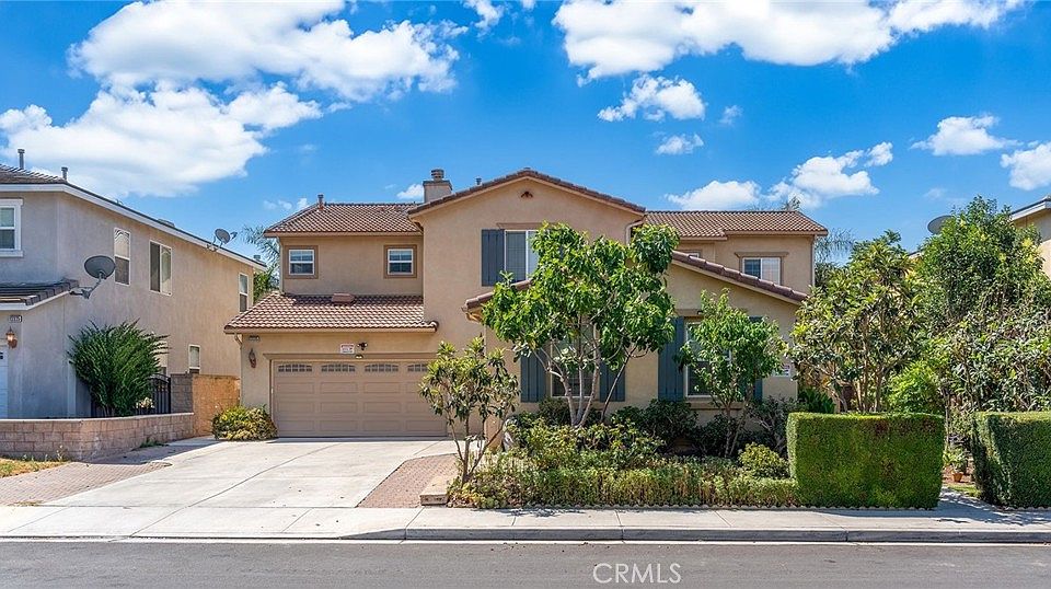 This Beautiful Home features 5 Bedrooms and 3 Bathrooms with 1 Bedroom 1 Bathroom downstairs! Plus, there is an extra Loft upstairs and a 4 Car Garage! Landscaped Private Front Yard with beautiful trees, bushes, and flowers with a long walkway leads to the Formal Entry and a Formal Living Room. The Family Room has Built in Media Niche w/Surround Sound and Fireplace. Large Gourmet Kitchen has Large Island w/Breakfast Bar & Nook. Granite Counter Tops with Custom Backsplash w/Designer Inlay Tile. Upgraded Appliances, Cherry Cabinets, Custom Flooring, Window Shutters and Blinds. Tray Ceiling in Spacious Master Suite - Travertine Counter Tops with Custom Tile Inlay Backsplash. Professionally Landscaped Backyard has a Built in BBQ and a variety of Fruit Trees. Great Location and NO HOA! Only minutes to the Schools, Freeways, Dining, and Shopping Centers. This is a Truly Peaceful and Lovely Home! Bring your imagination, and this HOME will be yours!!! Must see to appreciate it!