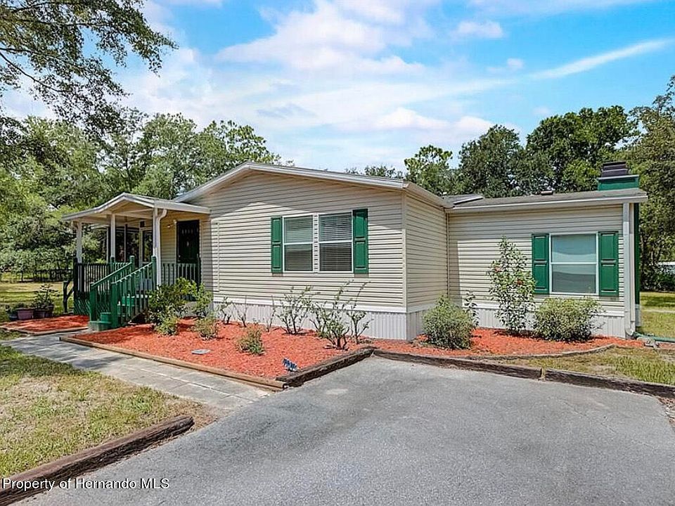 Welcome home to country living where you can enjoy a quiet, peaceful setting every day! This well cared for 3 bedroom, 2 bath home has plenty of room for your family and gatherings, with lots of living space inside and plenty of room outside. Spacious split floor plan with 2,140 sq ft. This home features a lovely kitchen with plenty of cabinet space and walk-in pantry, built-in oven and island cook-top, a breakfast area, large combination living room and dining area, and a separate cozy family room with fireplace. A new walk-way and wooden deck was installed on the front entrance. Screened in porch is perfect for relaxing. Newer utility shed with concrete floor and electricity. HVAC installed 2016 with regular maintenance checks. Roof is approximately 11 years old. The lot is partially fenced, 3 sides, and zoned AC agricultural, animals allowed. Lots of trees for shade and privacy. No HOA. All this just a few minutes from I-75, SR 52, and close to San Antonio and Wesley Chapel, shopping, entertainment, schools and hospitals.