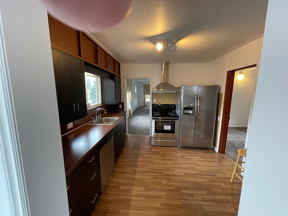 Totally renovated charming house. All new appliances including dishwasher, stove and fridge. New carpet throughout, blinds and window coverings. Lots of storage plus walk-in closets in both bedrooms. Easy care landscaping with large deck out back for summer BBQ's. Washer and dryer in basement with workbench and utility room. Please don't disturb the tenants Renter pays for all utilities. No Pets No smoking.