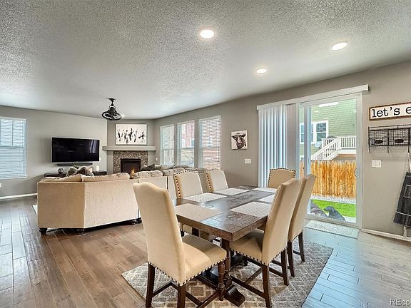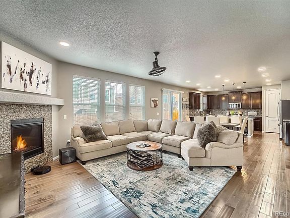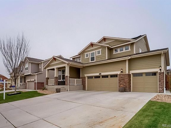 Welcome home to Amber Creek. This two-story Duncan' model welcomes you with beautiful, engineered hardwood floors, grand 9' ceilings, and all new interior paint. A home office is just off the foyer along with an upgraded powder room. Livingroom flows into the well-appointed kitchen boasts granite counters, an oversized center island, GE stainless-steel appliances, pantry, and ample soft-close cabinetry. Retreat to your primary suite complete with tre-ceilings, walk-in closet & private 5-piece bath. Upstairs there are four additional spacious bedrooms 1 is huge and ideal for a den/flex/playroom/media room. Two full bathrooms and laundry room complete the second story. The unfinished basement also has 9' ceilings and is plumbed for you to make it your own or use for additional storage. The mudroom leads to the oversized 3 car garage with heater, fan, and upgraded shop lights. Enjoy relaxing all summer on the spacious stamped concrete patio overlooking your zero-maintenance backyard featuring AstroTurf and a wood burning firepit. Dual hvac system & solar panels to reduce your monthly energy bill. Amber Creek has a park, green space, and trail system! Minutes from Trail Winds Rec Center, 27j schools, the outlet mall, and easy highway access. A brand-new King Soopers will open this summer at 136th and Quebec! Hurry and book your showing today!