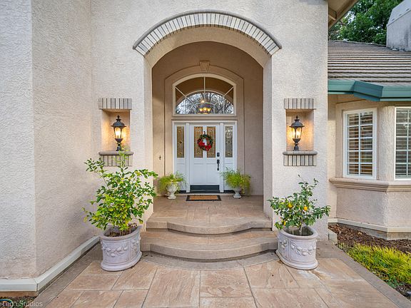Redding's most sought after Private Gated Golf Course Community, Tierra Oaks Estates. A stunning and elegant home located on the 18th fairway with views of the Clubhouse which is open to the public. Almost 1 full acre of gorgeous mature meticulously manicured gardens. Covered back patio with brand new decking and another large patio off the Primary Suite which overlooks the lush landscaping and beautiful newly refinished sparkling Gunite swimming pool. Large Formal Living Room and Dining Rooms, huge Family Room, both with cozy natural gas fireplaces. Gourmet Kitchen with large island, built-in custom SubZero Fridge, TWO Dishwashers, TWO ovens, TWO sinks. Beautiful breakfast nook with windows looking out to the garden and open to the Family Room which has a surround sound system. (Please click on More (highlighted in blue to the left) for further info. Custom wood casings around every low-e double pained window, large wooden plantation shutters. Custom wood casings from floor to ceiling at every transition into each room. Triple crown molding and coffered ceilings throughout. Custom Wainscoting throughout the home.