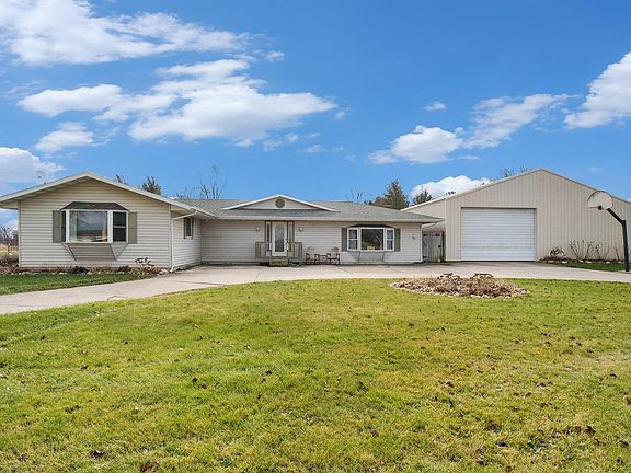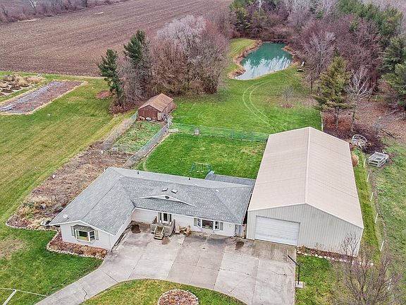 This Home Has Assumable Mortgage at 3.25% for Qualified Buyers. Contact your agent for additional information. Country Living on 7 Acres in Penn Schools! This 3 Bedroom, 2 Bath Home has Much to Offer! Large Eat-in Kitchen with Granite Counter-tops, Custom Cabinets w/Pull Out Drawers, Pantry Cupboards, Deep Drawers, Walk Around Island, & Appliances Included! Spacious Livingroom, Huge Primary Bedroom w/Plenty of Closet Space! Partially Finished Basement Features a Family Room, Plus an Additional Finished Room that could be used for a Den, Work-Out Room or Possibly a 4th Bedroom (no egress) and Ample Storage! 80x40 Pole Building w/Concrete Floor & Metal Roof is Attached to the House, 1 Acre Fenced Pasture, Fenced in Yard, Additional Shed, and Pond Stocked with Fish and Has Been Treated for Swimming! Approximately 4.5 Acres are Wooded.