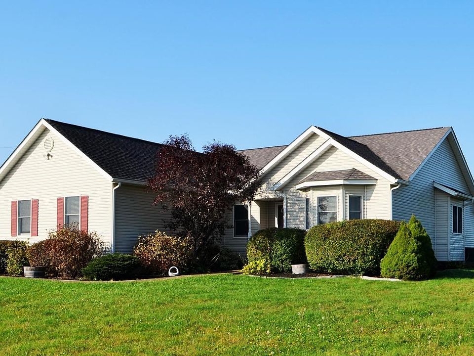 Beautiful Open concept, 3 bedroom 2 bath ranch home on 7.6 acres! Enjoy an Amish built 30X50 concrete floor w/ addl' 10x30 storage area, metal pole barn w/ H2O & electric, 12X20 shed & Fully stocked 1/2 acre pond w/ windmill aerator! Plenty of additional land for hunting or farm animals! BRAND NEW Roof in 2015! A Lovely concrete patio for BBQ's! Home features an open concept w/ large kitchen that provides lots of cabinetry & counter space! Great room has cathedral ceiling & new upgraded skylight for lots of natural light! Owners bedroom has large walk in & private bath w/ garden tub, walk-in shower & double sinks! Home has Newer carpet & Kinetico H2O system. Full basement ready to finish! Home is meticulously taken care & it will show well! Check out virtual land flyover. Motivated Seller