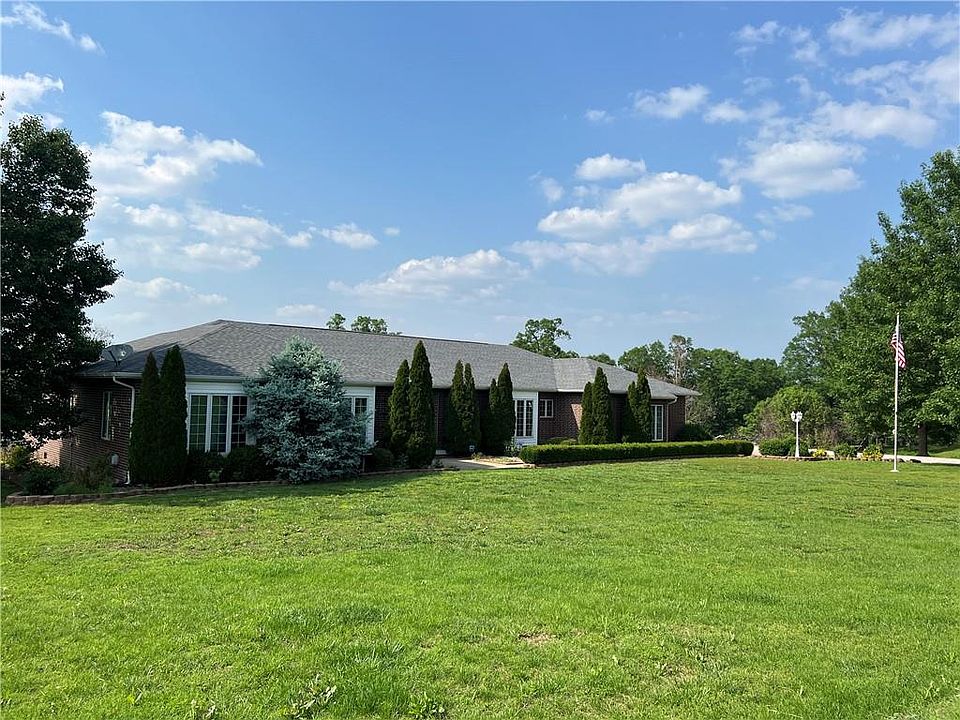 Step into this luxurious ranch-style home and let your dreams take over! This 4 bedroom, 2 1/2 bath home with a 3 car attached garage is waiting for you to call it yours! Offering a stunning eat-in kitchen, a formal dining room, and two living areas, this property provides plenty of room with little to no wasted space. Enjoy the spacious 4.1 acres M/L of land with its own basketball court and beautiful back patio- perfect for outdoor play or entertainment. On those warmer evenings, you will love to sit back and relax on the screened in patio overlooking the backyard and the rolling hills of the neighboring properties. Whether it's BBQs out back or game nights in the living rooms – there will always be enough space for everyone! Come see why this beautiful home should be yours today!