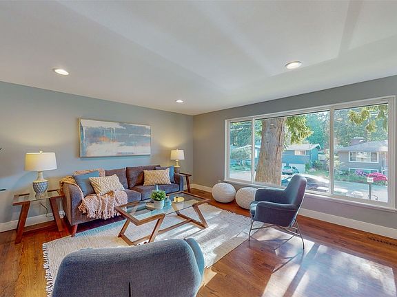 Relax and enjoy this recently remodeled mid century home in Olympic Hills. Located near the end of a quiet dead end street, spend evenings with friends cooking in the recently remodeled kitchen or relaxing on the expansive back yard deck (~350 sq ft of composite decking). Other updates include new Kitchen Aid appliances in 2022, installation of central air conditioning in 2022, new furnace in 2021, and a completely remodeled basement. The main floor has 3 bedrooms and 1 full bath along with the kitchen, dining and living room. The basement has a large family room, 4th bedroom/office space and a 3/4 bath. The large 2 car garage has plenty of space for storage. Quick access to I-5, Lake Washington and the Northgate Station.