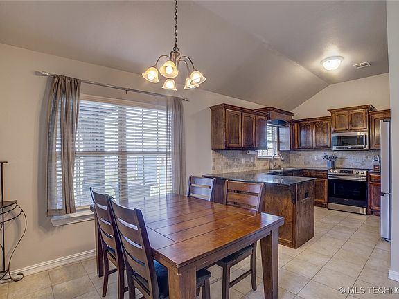 Welcome to this 3 bedroom 2 full bath home that is move-in ready. Great location with easy access to Hwy 169 and close to everything that Owasso/Collinsville has to offer. New kitchen appliances, new kitchen sink, new hot water heater. This home offers plenty of natural light in every room! The long entryway leads to the spacious living room with 10ft ceilings making the space feel very open. Lots of storage in the kitchen with granite countertops. Extra storage cabinets in the laundry room. Primary bedroom offers a vaulted ceiling with an en suite bathroom, two sinks and wrap-around walk-in closet. Enjoy the Oklahoma sunsets from the extended covered back patio and large backyard. Storage shed located in the backyard for all your lawn care needs. Shed is exempt from inspections.