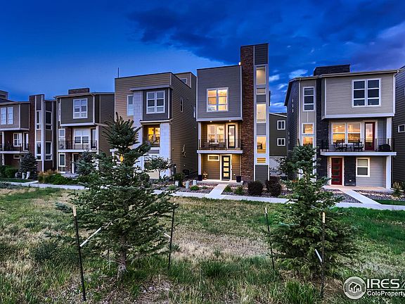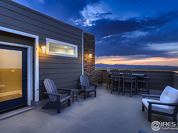 Stunning Views! This prime lot offers the most breathtaking mountain views you can find. Modern finishes abound in this beautifully maintained home nestled in The Ridge at Broomfield. Move-in ready, this 3-story gem features 3 bedrooms, 2.5 baths, and two outdoor spaces-a balcony and a rooftop deck-perfect for soaking in the views. The kitchen is a chef's dream with upgraded appliances including gas cooktop, walk-in pantry, and island seating. The primary bedroom features a luxurious en-suite bathroom, a walk-in closet, and large windows. The secondary bedroom is generously sized with stunning views and is currently set up as an office. Laundry closet conveniently located near the upstairs bedrooms for easy access. The main-level bedroom is non-conforming but offers excellent additional space for guests or a second office, with seamless access to the powder bathroom. The attached 2-car garage includes an epoxy floor and crawl space access for added convenience. Attention to detail is evident throughout, with real wood trim, 9-foot ceilings, 8-foot doors, and recessed lighting with 5-setting dimmers for your comfort. Impeccably maintained with pride of ownership, this home feels like new. Relax on the private rooftop terrace, which includes gas and water hookups, perfect for gardening and outdoor cooking, while taking in 360-degree views of the mountains and city. Enjoy walking trails, and manicured parks, right outside your front door. Experience the ease of low-maintenance living combined with the perks of single-family homeownership. You don't want to miss this one!