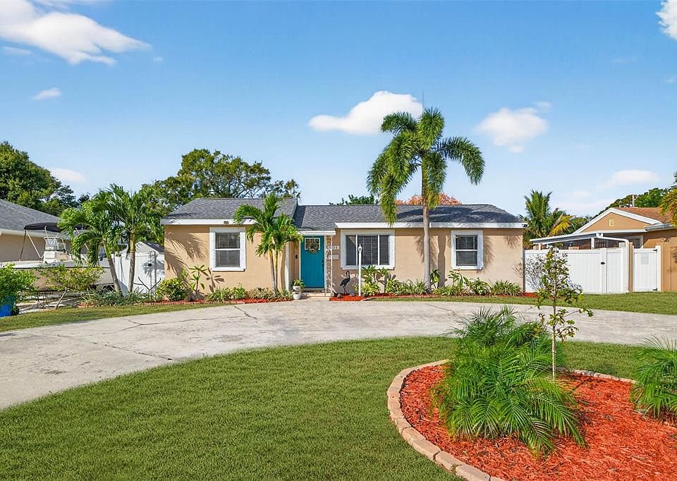 Welcome to 1334 59th Street North, a beautifully updated 3-bedroom, 2-bath NON-FLODD ZONE POOL home with a bonus room and den, perfectly combining comfort, functionality, and Florida charm. Surrounded by fresh landscaping and citrus trees, this home offers an exceptional living experience with modern updates throughout. Step inside to discover a bright and open split floor plan with tons of versatility. The kitchen boasts real wood cabinetry, granite countertops, and Whirlpool and GE appliances. The oversized primary ensuite serves as a peaceful retreat, while the additional bedrooms and flexible den and bonus room provide options for a home office, playroom, or guest space. There is even a dedicated laundry room! Enjoy the best of outdoor living in your private backyard oasis featuring a screened-in lanai (2023) and concrete chlorine pool with a variable-speed pump (2023). The yard is fully fenced for privacy and surrounded by lush greenery. Major updates provide lasting peace of mind, including a new shingle roof (2024), a new Gree HVAC (2023), new gutters (2024), updated window screens (2025), a new front door (2023), recessed lighting, crown molding, and dimmer switches that create a refined yet inviting ambiance. Ideally located near shopping, dining, and just minutes from downtown St. Pete and the Gulf beaches, this home offers the perfect blend of elegance, convenience, and lifestyle. Call today for your private showing!