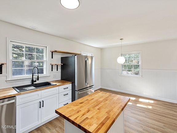 Location, location, location! This split level 3 bedroom, 2 bathroom home is located off of Masonboro Loop Road, less than 1/4 mile from the back entrance to Masonboro Elementary, minutes to Wrightsville Beach, Carolina Beach, and the various shopping, dining and entertainment of Midtown. Upon entering, you will fall in love with all the brand new updates throughout. The kitchen features upgraded white cabinetry, butcher block countertops, floating shelving, and stainless steel appliances. The kitchen overlooks the dining room and living room which is ideal for entertaining. Located off of the kitchen, the bright and airy family room is spacious and has access to the garage and outside patio. All 3 bedrooms are located on the second floor. The large primary bedroom features a fully renovated ensuite bathroom with a tiled wall walk-in shower. The two additional bedrooms share a full bathroom that has also been completely updated with a tub/shower combo and ceramic tile surround. Outside, a storage shed offers additional storage while the large, fully fenced backyard is ideal for furry friends, gatherings, and outdoor activities! Additionally the roof and HVAC are +/- 6 years old and the home was re-plumbed with modern PVC and PEX. Located in the popular Masonboro Elementary school district. No HOA!! Make this home yours today!
