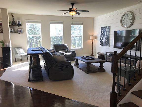 A MUST SEE! You will feel the warmth in this home and appreciate the attention to detail as soon as you enter the front door! Main level includes a bedroom, full bath, Formal Living or Dining Room, SPACIOUS kitchen with 10' island and eat in area and opens to GREAT room with shiplap accent wall. You will appreciate the cubby organizer when you step in from the two car garage. The garage includes an extra bump out area, currently used as a gym, or could be storage or work shop space. Enjoy lots of hardwood floors on the main level and stairs. Upstairs includes a spacious master bedroom with trey ceiling, H/H closets and private bath with HUGE shower and dual sinks; two other bedrooms with good closets share a bath; and a HUGE bonus room w/closet (which could be 5th bedroom) completes the home! Outside, enjoy the deck with a covered pergola which overlooks a private fenced back yard! Home built in 2015!